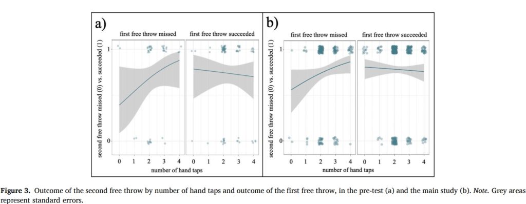 – pre-studyの段階でのデータを示しており、左側が1投目のフリースローが失敗した場合、右側が1投目が成功した場合の2投目の結果です。
